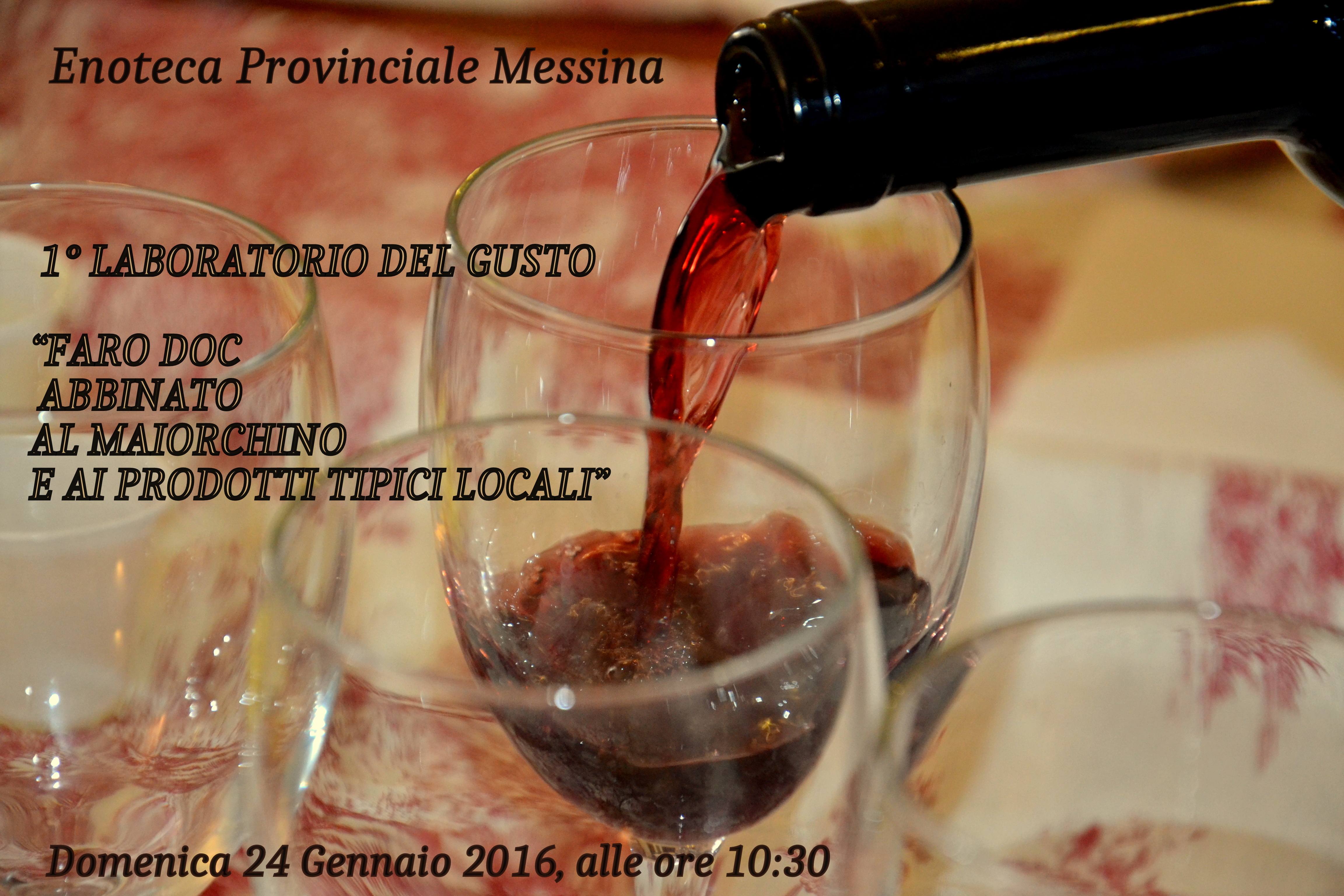 L'Enoteca Provinciale di San Placido Calonerò domenica 24 gennaio 2016, alle ore 10.30, organizza il Laboratorio del Gusto dal tema: "Faro doc abbinato al Maiorchino e ai prodotti tipici locali".