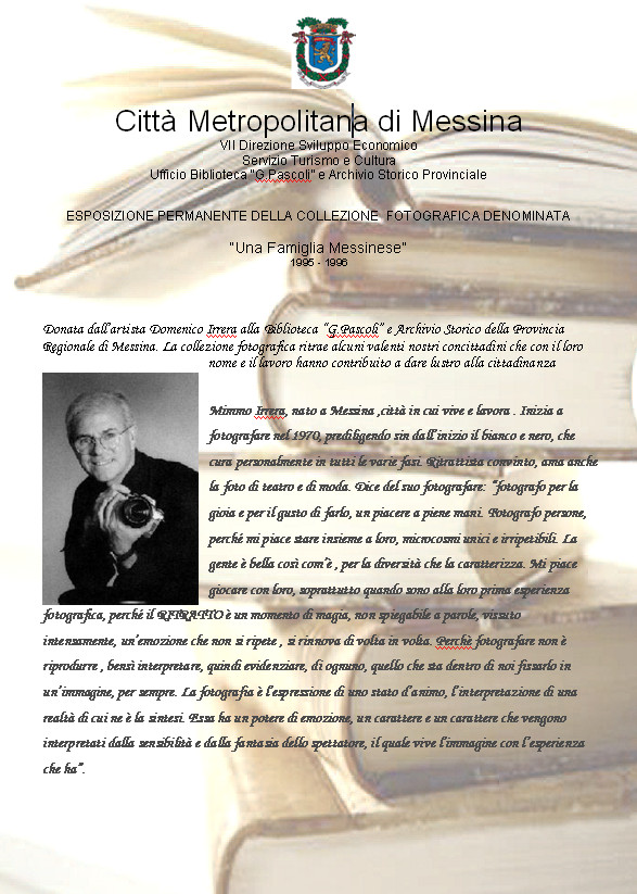 La collezione fotografica, donata dall'artista Mimmo Irrera alla Biblioteca "Giovanni Pascoli", ritrae alcuni famosi cittadini messinesi che, con il nome e il lavoro, hanno contribuito a dare lustro all'intera comunità.