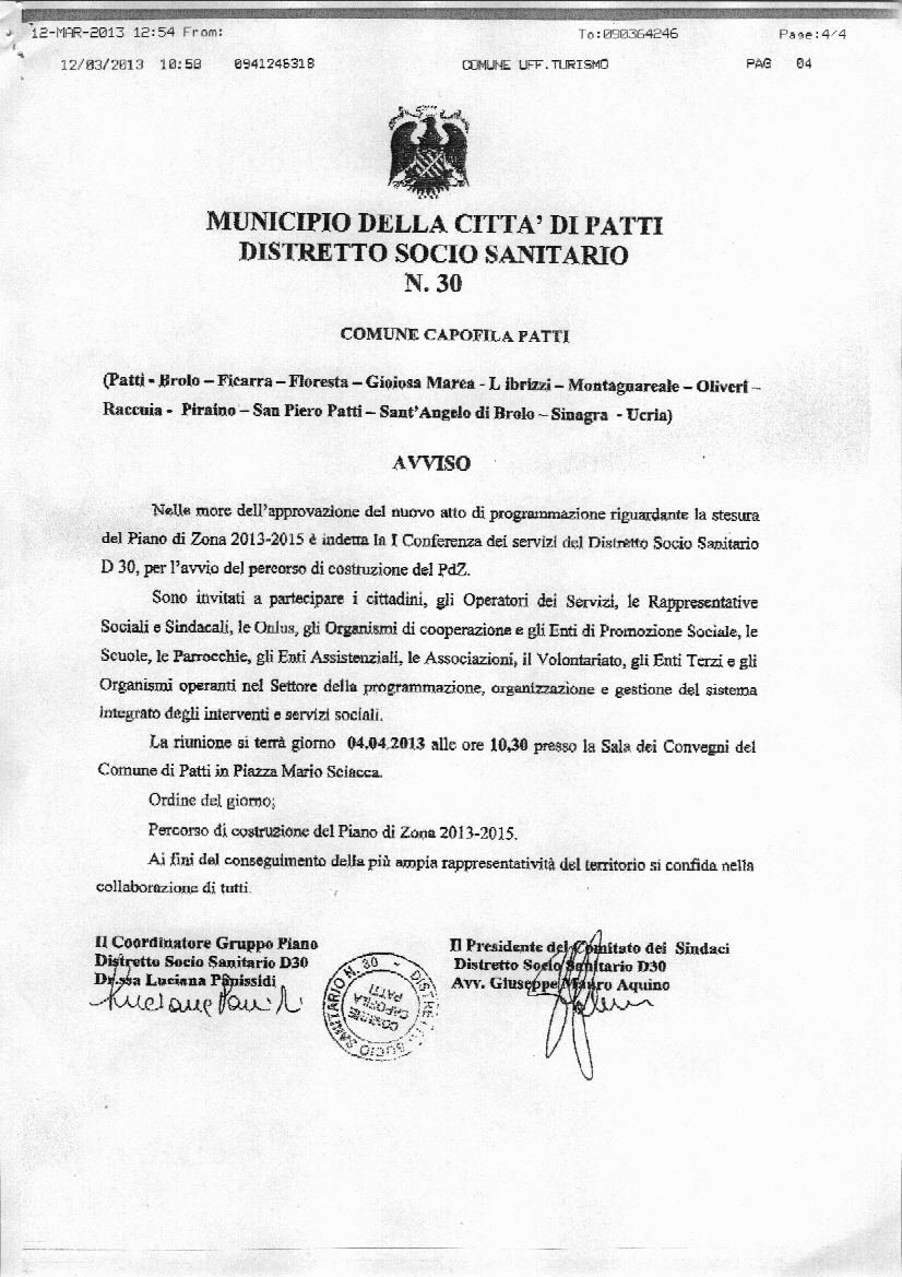 I Conferenza dei Servizi Distretto Socio Santario D30 Avvio percorso costruzione Piano di Zona 2013-2015 Clicca qui per il download dell'avviso