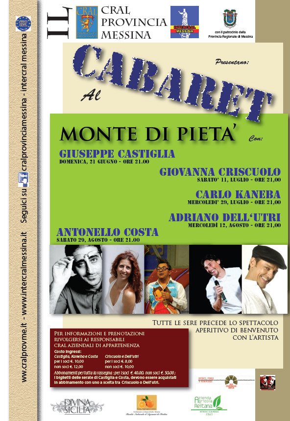 "Cabaret al Monte di Pietà" è il titolo della rassegna in programma dal 21 giugno al 29 agosto 2015 a Messina.