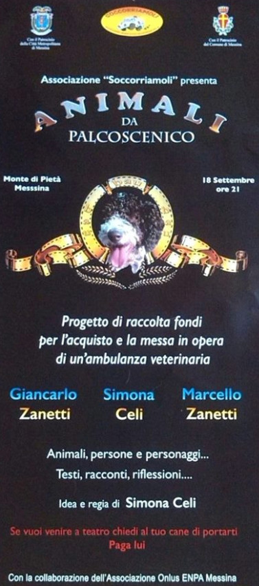 L'Associazione onlus "Soccorriamoli", in collaborazione con la Città Metropolitana ed il Comune di Messina, presentano l'evento dal titolo "Animali da Palcoscenico", un progetto pilota di raccolta fondi per l'acquisto e la messa in opera di un'ambulanza veterinaria a Messina.