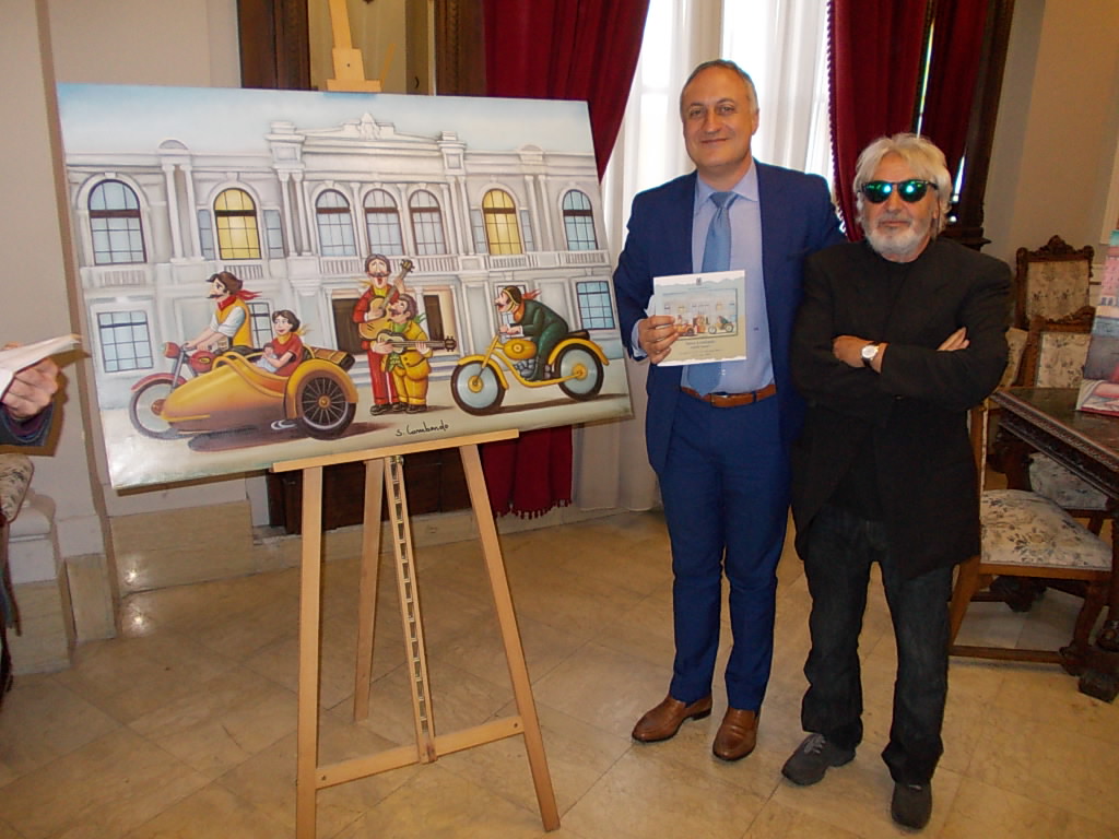 Venti gli oli su tela esposti nello spazio allestito nel Salone degli Specchi, opere che esprimono l’esuberanza di un artista che fonda il suo stile nella vivacità dei colori e nella morbidezza dei suoi personaggi, sempre ricchi di un’accattivante umanità, figure intrise di innata simpatia ed immerse in un mondo certamente molto più umano e benevolo di quello reale, una visione immaginaria che trova le sue radici nella genialità raffinata di Lombardo.