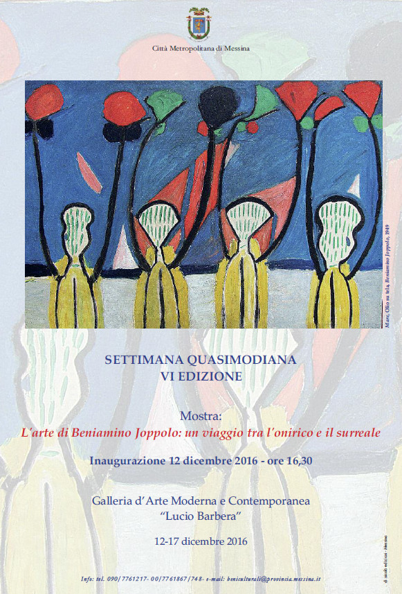Prenderà avvio lunedì 12 dicembre, alle ore 16.30, negli spazi espositivi della Galleria d’Arte Moderna e Contemporanea “Lucio Barbera”, la VI edizione della “Settimana Quasimodiana”, organizzata dalla Direzione Cultura della Città Metropolitana di Messina.