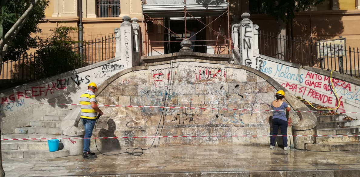 La Città Metropolitana di Messina, in sinergia con il Liceo Maurolico, sta provvedendo ad effettuare le operazioni di pulitura dalle scritte vandaliche dal prospetto principale dell'istituto.