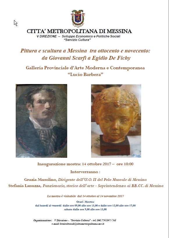 In occasione di questo appuntamento annuale, che quest’anno si svolgerà sabato 14 ottobre, il “Servizio Cultura” della V Direzione dell'Ente organizzerà, alle ore 10,00, presso i locali della Galleria d’Arte Moderna e Contemporanea di Via XXIV Maggio, un incontro in occasione della inaugurazione della mostra dal titolo: “Pittura e scultura tra ottocento e novecento a Messina : da Giovanni Scarfì a Egidio De Fichy”.