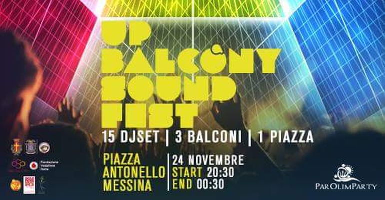 È stato presentato stamani, nella Sala Giunta “Falcone Borselino” di Palazzo Zanca, l'appuntamento con "Up Balcony Sound Fest", l’evento di solidarietà che venerdì 24 novembre, a partire dalle ore 20.30, nella suggestiva atmosfera di piazza Antonello a Messina, coinvolgerà quindici deejay per una manifestazione musicale unica. Tre balconi delle logge (Palazzo dei Leoni, Comune, Università) avvolgeranno di musica, divertimento e solidarietà l‘intera piazza Antonello, con lo scopo di raccogliere i fondi necessari alla realizzazione del progetto Parolimparty.