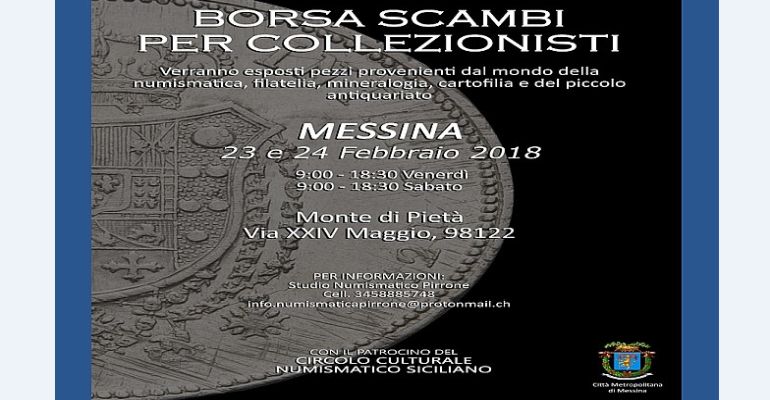 Nel corso dell'evento, organizzato col patrocinio del Circolo culturale numismatico siciliano e della Città Metropolitana di Messina, si svolgerà un convegno numismatico che vedrà gli interventi di esperti.