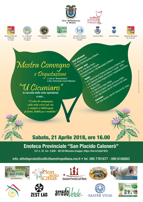 Sabato 21 aprile 2018, alle ore 16.00 presso l’Enoteca Provinciale “San Placido Calonerò” si svolgerà la mostra convegno “U cicuniaru. La raccolta delle erbe spontanee e non…".